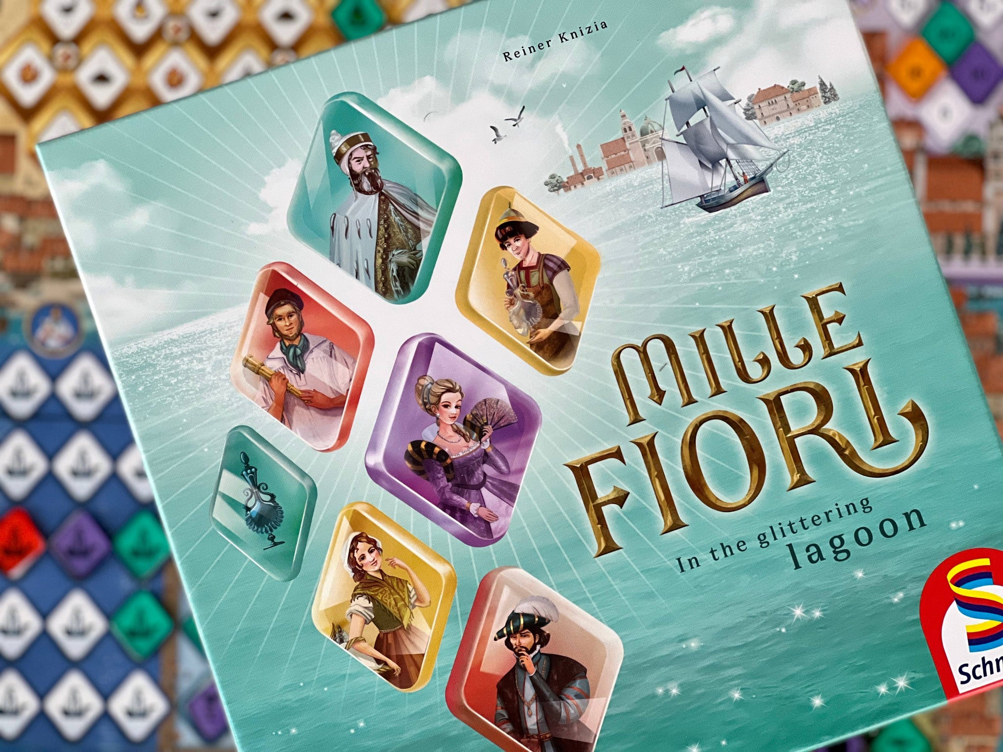 "In Reiner Knizia's Mille Fiori (millefiori is a glasswork technique for decorative patterns, the name means Thousand Flowers), you take the role of glass manufacturers and traders who want to profit as much as they can from their role in the production of fine glass art. The game board features different aspects of the glass production cycle: workshops where the glass is created, houses where it's installed, people who support your work, trade shops where it's sold, and the harbor where ships take the glass to faraway locations. You want to be present in all of these areas, preferably at just the right time to maximize your earnings. The gameboard features 109 spaces, with one card in the deck for each of those spaces."