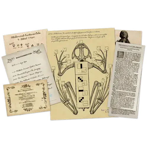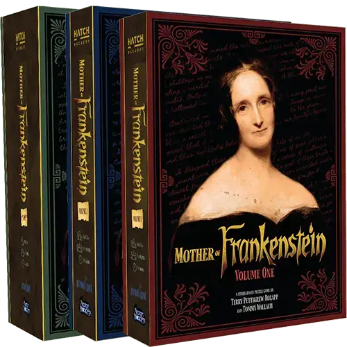 Enter the world of Mary Shelley, author of Frankenstein! Mother of Frankenstein is a groundbreaking new puzzle game that combines the best of escape rooms, board games, immersive theater, and novels. Designed for 1-6 players, ages 13 and up, MoF offers 10-15 hours of puzzles to solve, 2D and 3D jigsaws to construct, gorgeous documents to parse, and mysterious artifacts to examine, all wrapped up in a shocking re-conception of the true story behind Mary Shelley’s famous monster. You have just received “The Shelley Volumes,” a collection of hollowed-out books left by Mary Shelley (author of Frankenstein) to her son, Florence. In the first volume, you find a message from Mary: “Contained within these volumes is a secret many great men have devoted their entire lives to unearthing, and always in vain. It is a secret I would have taken with me to the grave, except that it is, in more ways than one, our family’s legacy, and thus rightfully belongs with you…”